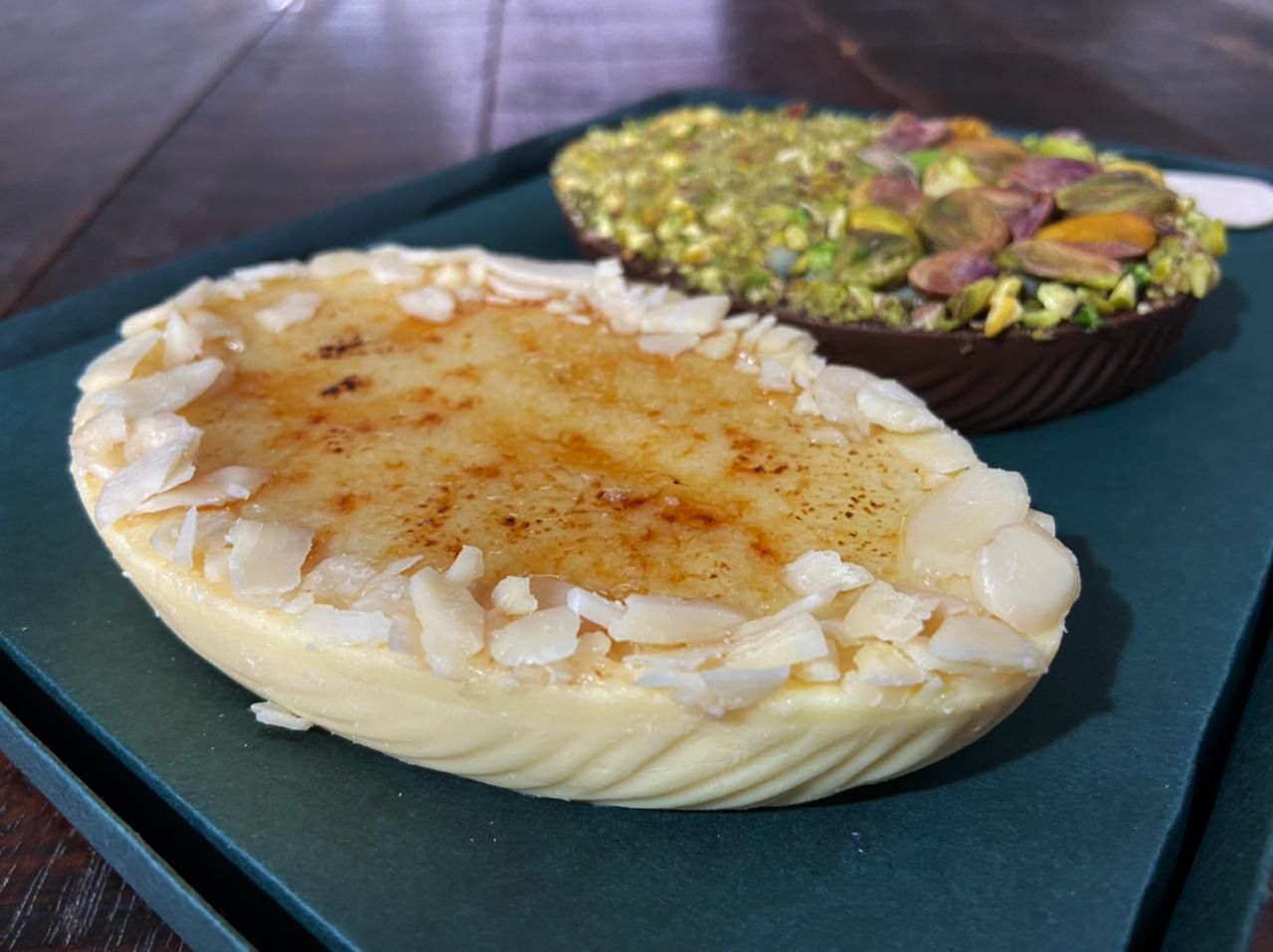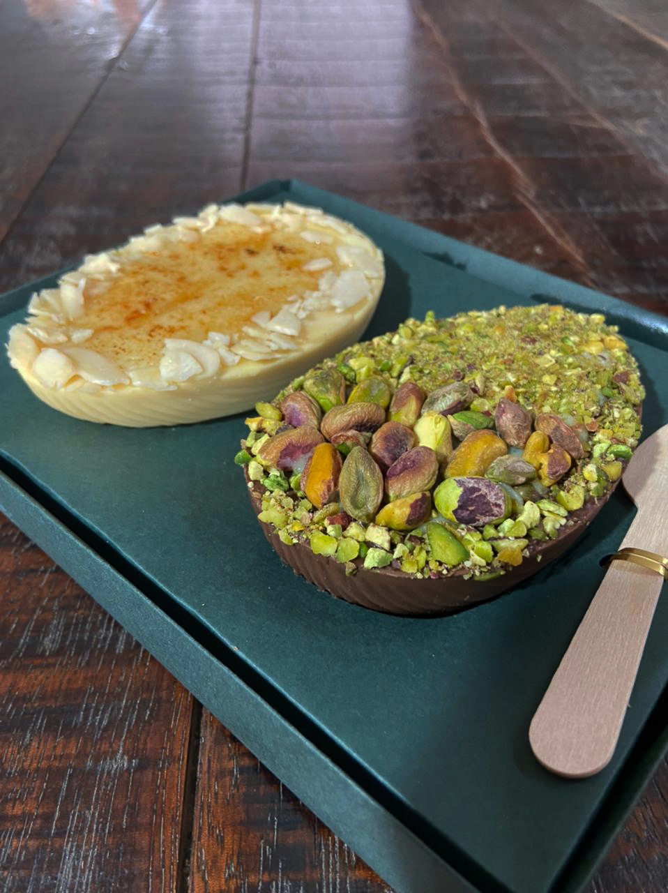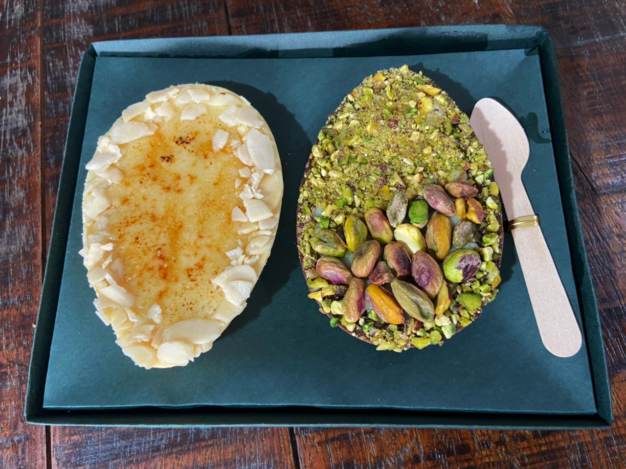 A Aguçarte nasceu para ressignificar as relações de carinho e afeto através das cestas e caixas para presentear, já que busca adoçar sempre a vida e proporcionar experiências incríveis. Com curadoria do personal chef, Allex Bizarro, a dupla de ovos selecionada para a curadoria da Campinas Cafe foi Pistache e Crème Brûlée. O primeiro, tem casca de chocolate ao leite recheado com ganache de chocolate meio amargo e pistache, enquanto a receita francesa ganha pitadas ainda mais saborosas com a casca de chocolate branco recheado de crème brûlée e amêndoas. Ótimas opções para quem quer sair do convencional com sofisticação e delicadeza!