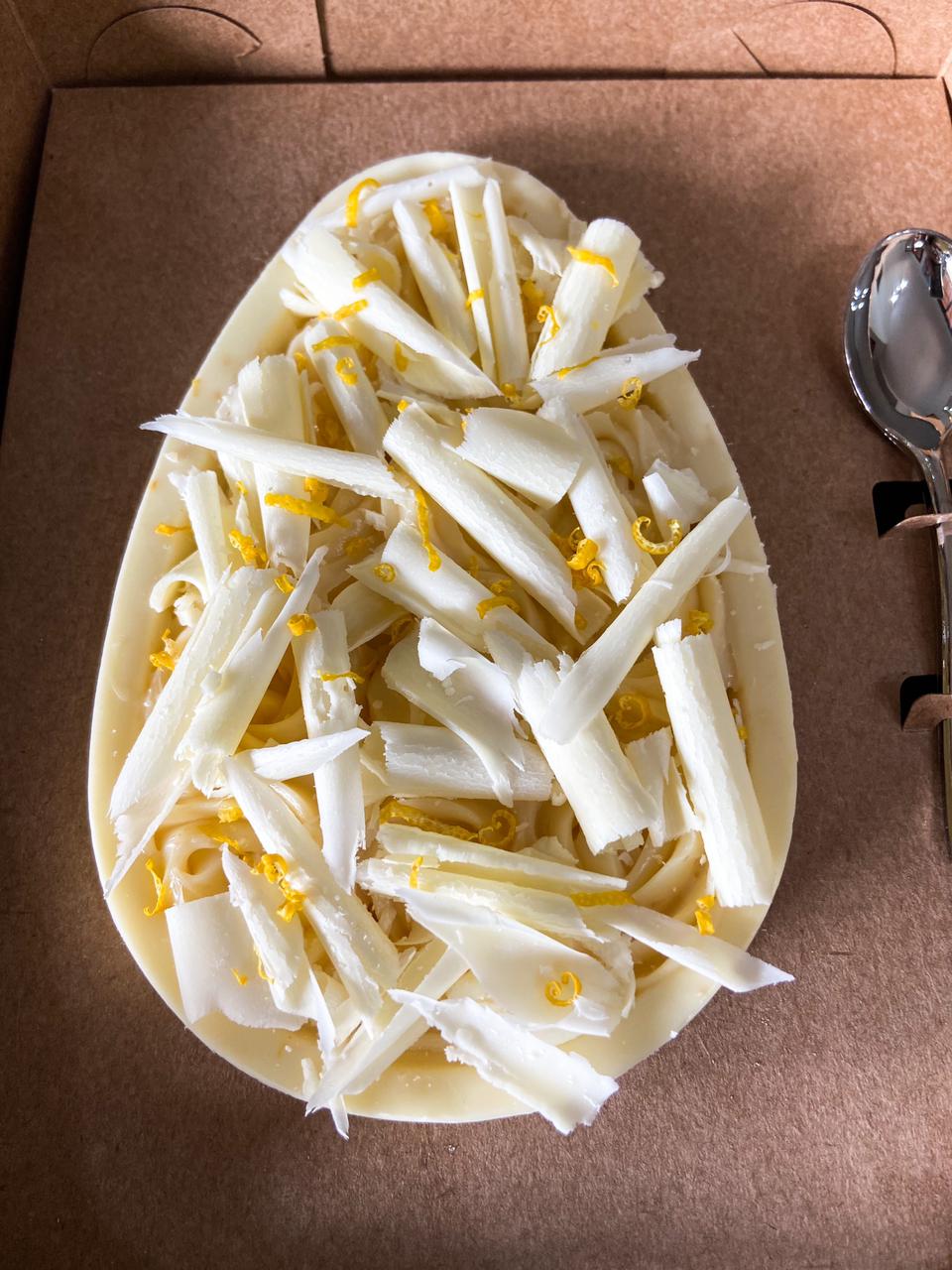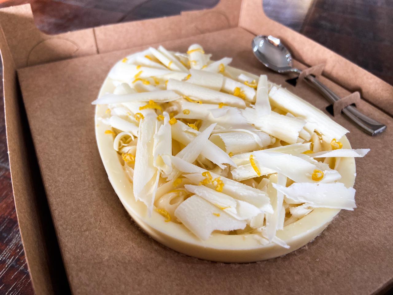 A marca de doces criada pelo casal Gabriel Cosso e Rafaella Inocente, para inaugurar a sua primeira Páscoa, lança um cardápio de ovos de colher e ovos trufados com diversos sabores. Uma das apostas da marca e mais marcantes do menu é o ovo de colher de limão siciliano, composto por uma casca de chocolate branco e recheio de ganache de chocolate branco com toques de limão. Suave e, ao mesmo tempo, marcante.