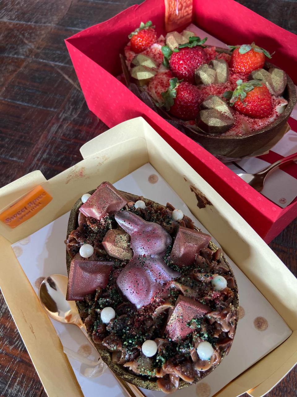 A redação da Campinas Cafe destaca dois ovos da Sweet Spice Gourmet: o recheio dos Deuses composto por ninho com pedaços de chocolate derretido e Alpino, de aproximadamente 350 gramas, e o Ninho trufado com Nutella, com decoração de morangos e corações de chocolate lapidado, de aproximadamente 600 gramas. Com certeza, essas opções são perfeitas para quem gosta de doces bem marcantes!