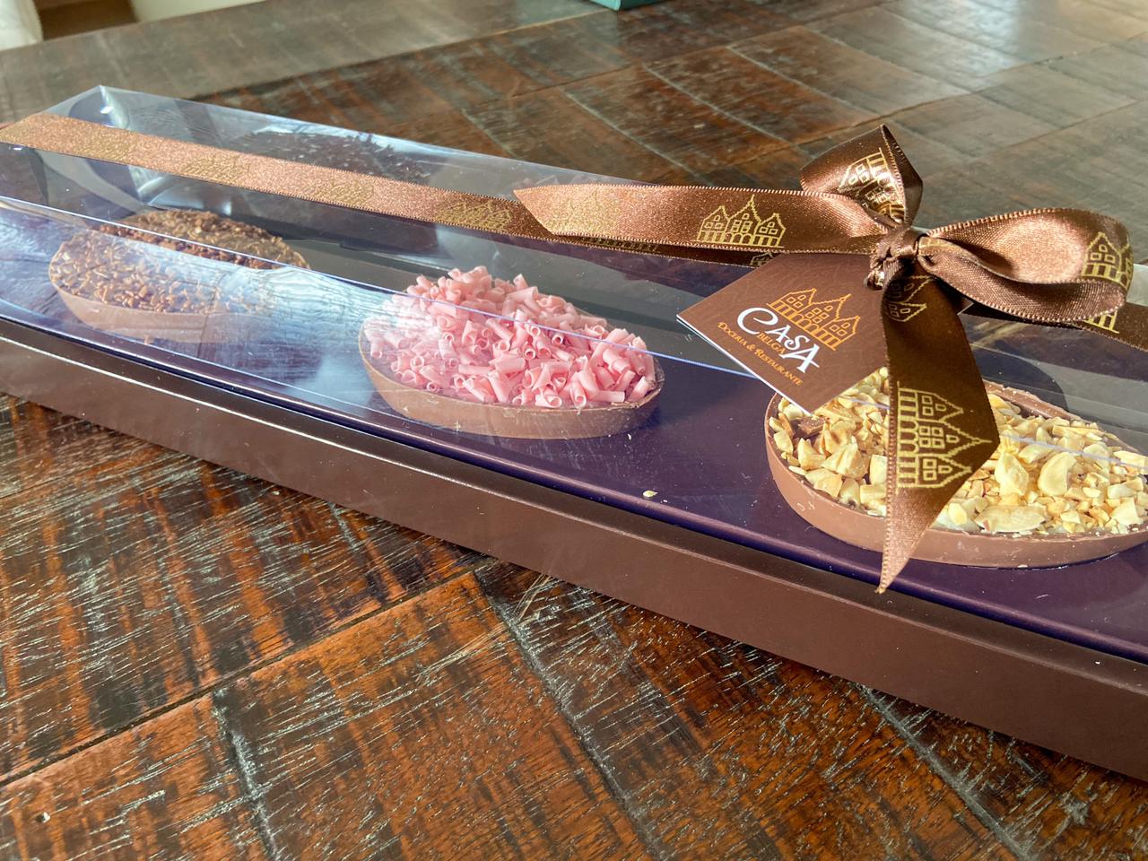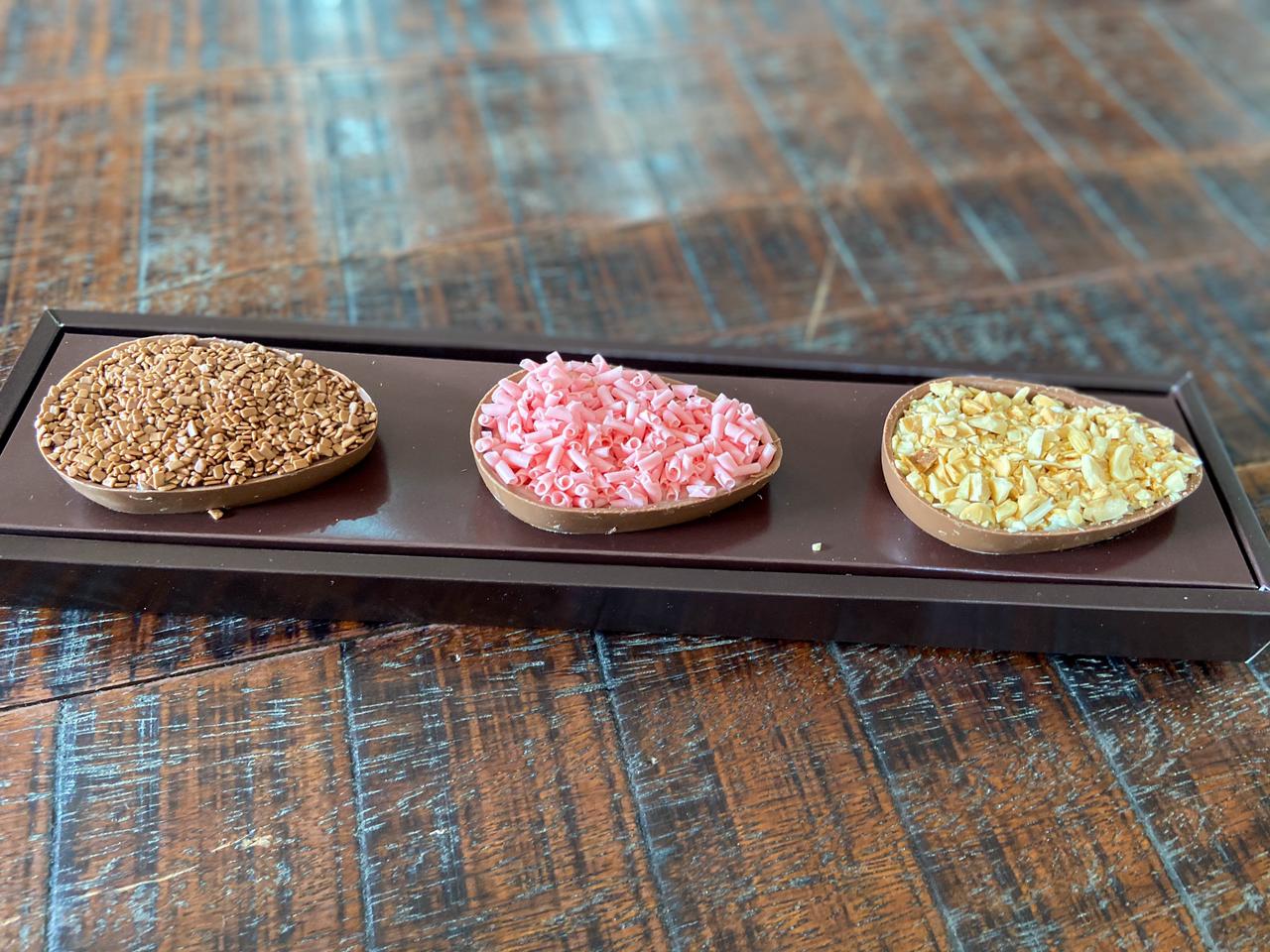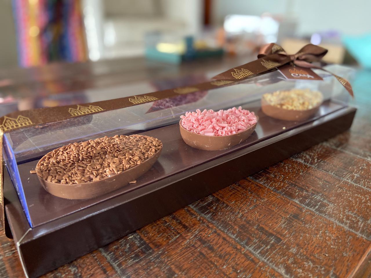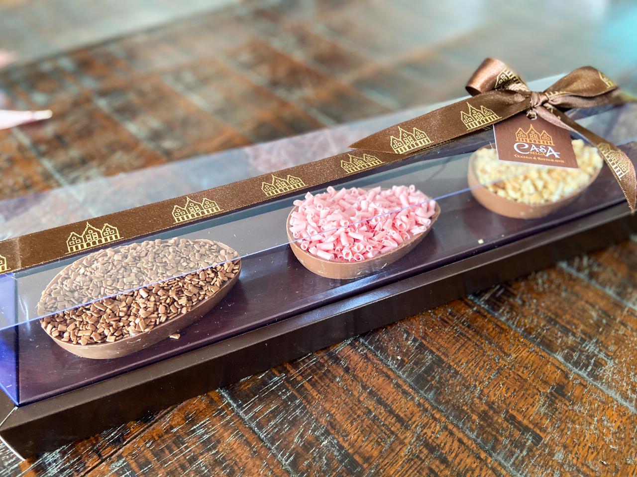 O destaque deste ano da Casa Belga Doceria & Restaurante fica para o Trio Fantástico com três mini ovinhos de colher sabor chocolate ao leite com chocolate belga, recheado com brigadeiro tradicional, beijinho com amêndoas e, por último, brigadeiro de morango, o famoso e queridinho bicho-de-pé. Todos pesam aproximadamente 150 gramas, no tamanho ideal para provar diversos sabores nesta Páscoa.