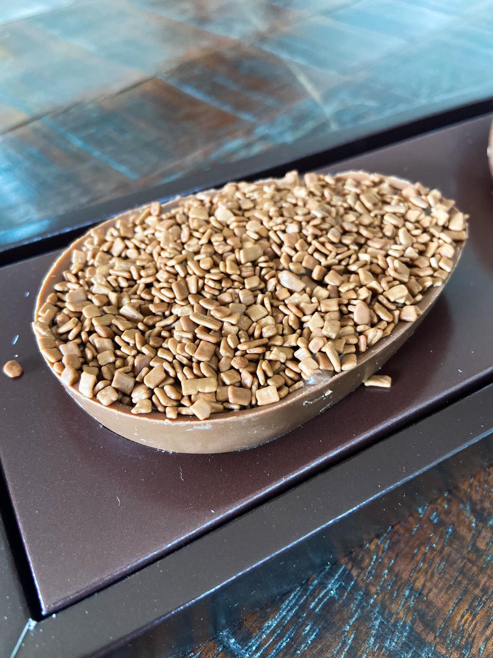 Para quem busca uma opção mais sofisticada e nada clichê, vale provar o Ovo de Páscoa da Caramella Doceria. Com notas que lembram o famoso tiramissu, possui casca de chocolate preto e recheio de café, com confeito granulado de chocolate ao leite e duas trufas sabor licor de Amarula para decorar. A harmonização da bebida com o doce traz uma mistura de sabores incrível que deixa qualquer apaixonado bastante satisfeito.