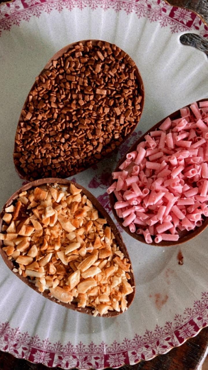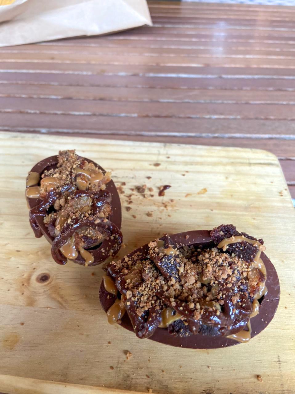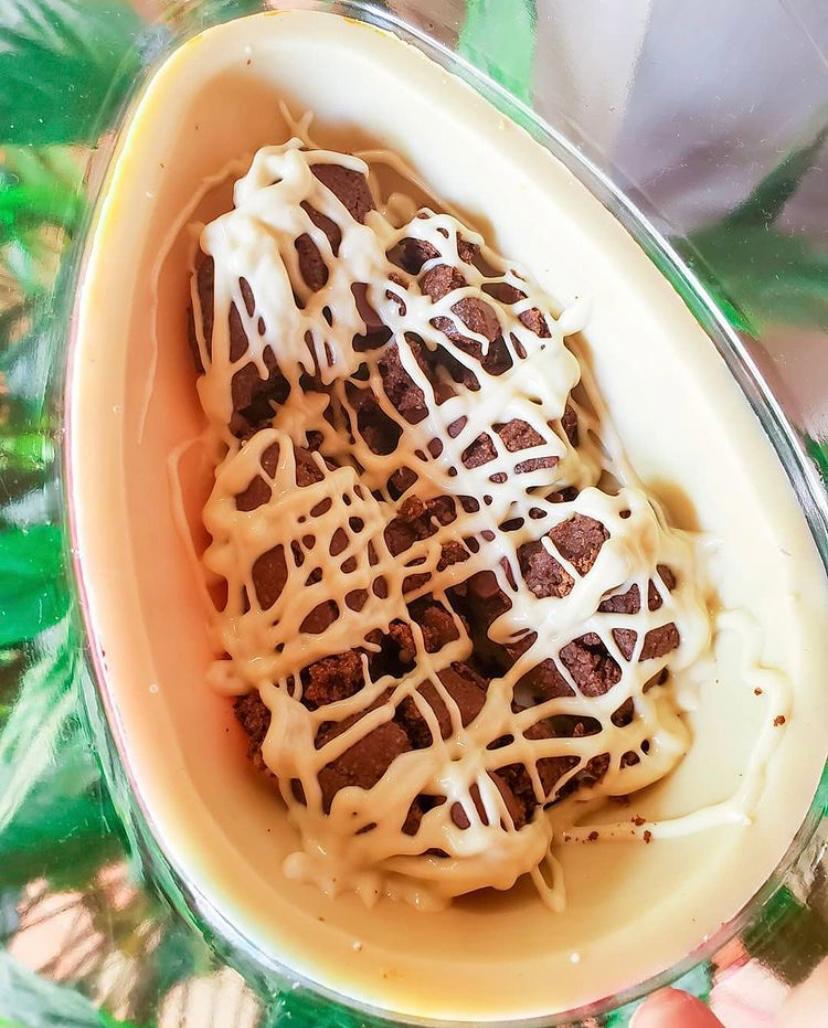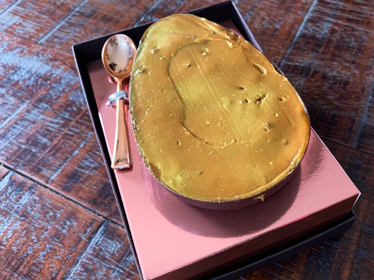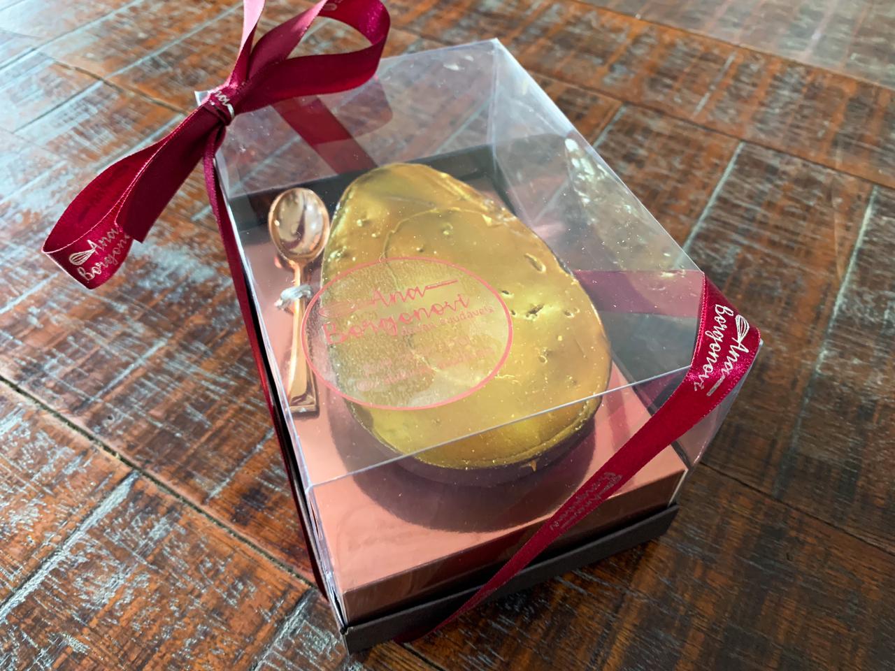 A doceria saudável da Ana Borgonovi entrou na nossa lista para incluir aqueles que prezam pela alimentação saudável ou possuem algum tipo de restrição alimentar, mas não querem abrir mão de um docinho na Páscoa. Sem açúcar, sem lactose e sem glúten, o delicioso dourado, que acompanha uma colher rosé, é recheado com pão de mel. O ovo é majestoso e impressiona para quem deseja presentear. Por dentro, você se depara com uma massa leve e fofinha, que intercala brigadeiro e doce de leite!