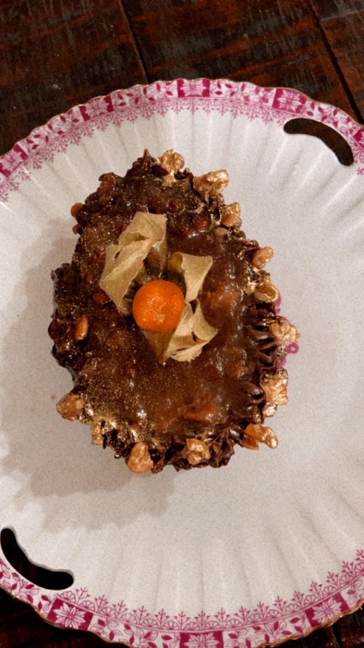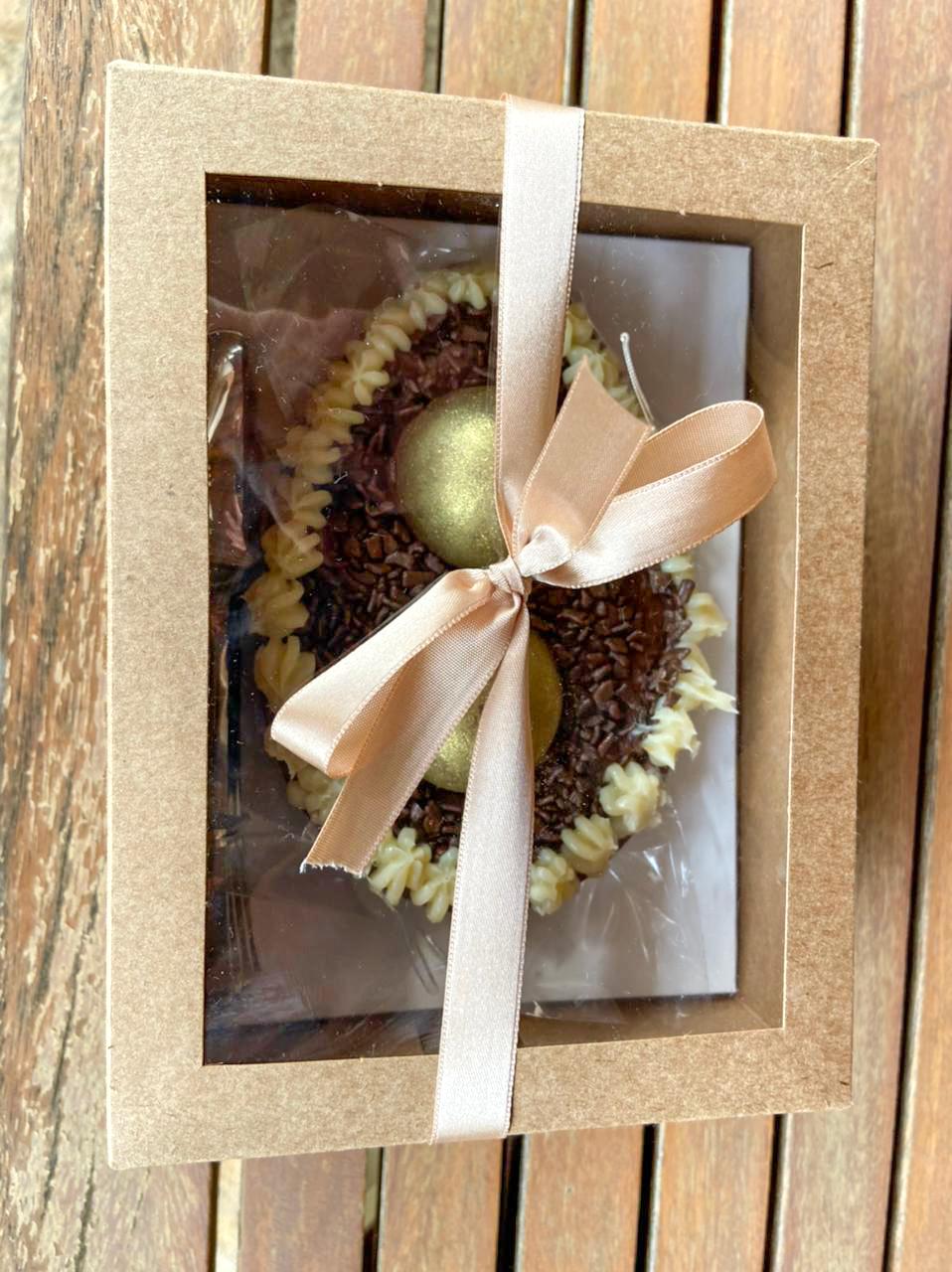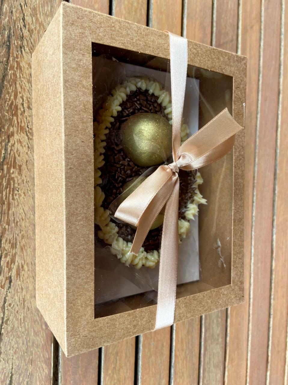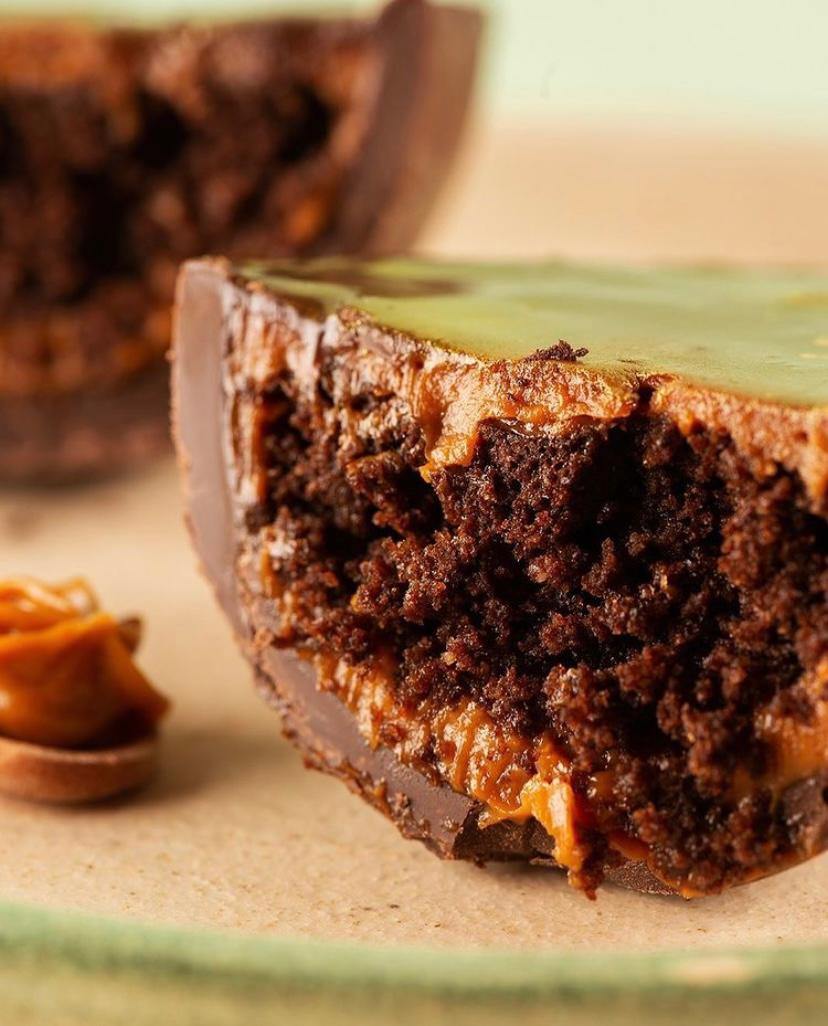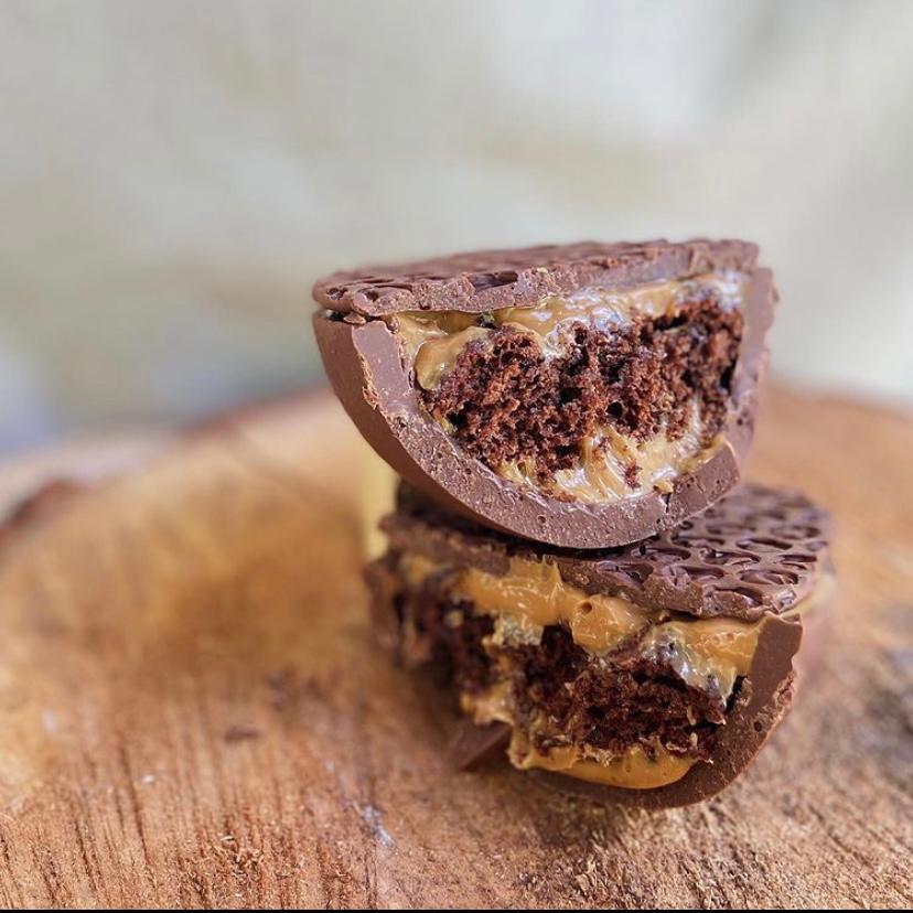 A doceria saudável da Ana Borgonovi entrou na nossa lista para incluir aqueles que prezam pela alimentação saudável ou possuem algum tipo de restrição alimentar, mas não querem abrir mão de um docinho na Páscoa. Sem açúcar, sem lactose e sem glúten, o delicioso dourado, que acompanha uma colher rosé, é recheado com pão de mel. O ovo é majestoso e impressiona para quem deseja presentear. Por dentro, você se depara com uma massa leve e fofinha, que intercala brigadeiro e doce de leite!